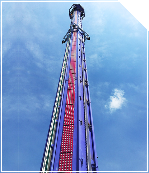 设备高度60米,提升高度49.2米,最大下坠速度85-100KM/H。旋转提升式自由落体,座舱在提升过程中可水平360°旋转,游客在座舱上可饱览四周的美景,当座舱提升到一定高度后忽然速降,以重力加速度之势重返地面,让你感觉一种完全的失重、完全的真空,毫无杂念、只有尖叫和极限刺激。