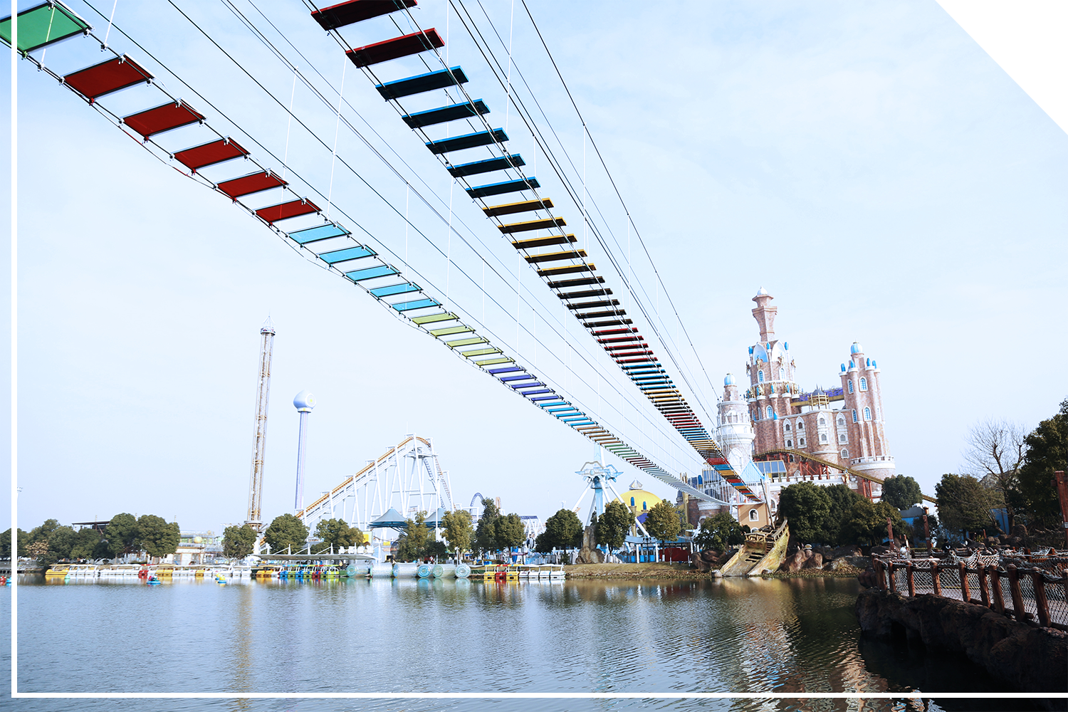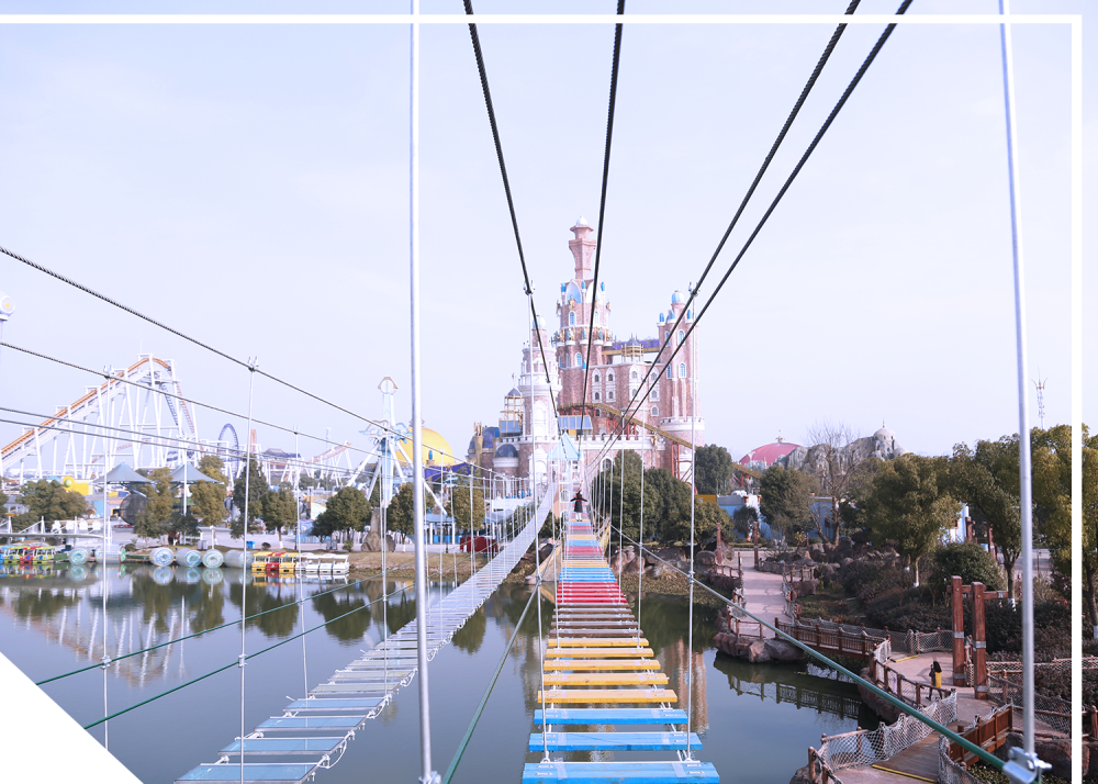 全长260米,双向吊桥,横跨于10米高湖面。连接魔法花园与酷玩世界,在摇晃的吊桥上感受别样的惊险刺激。