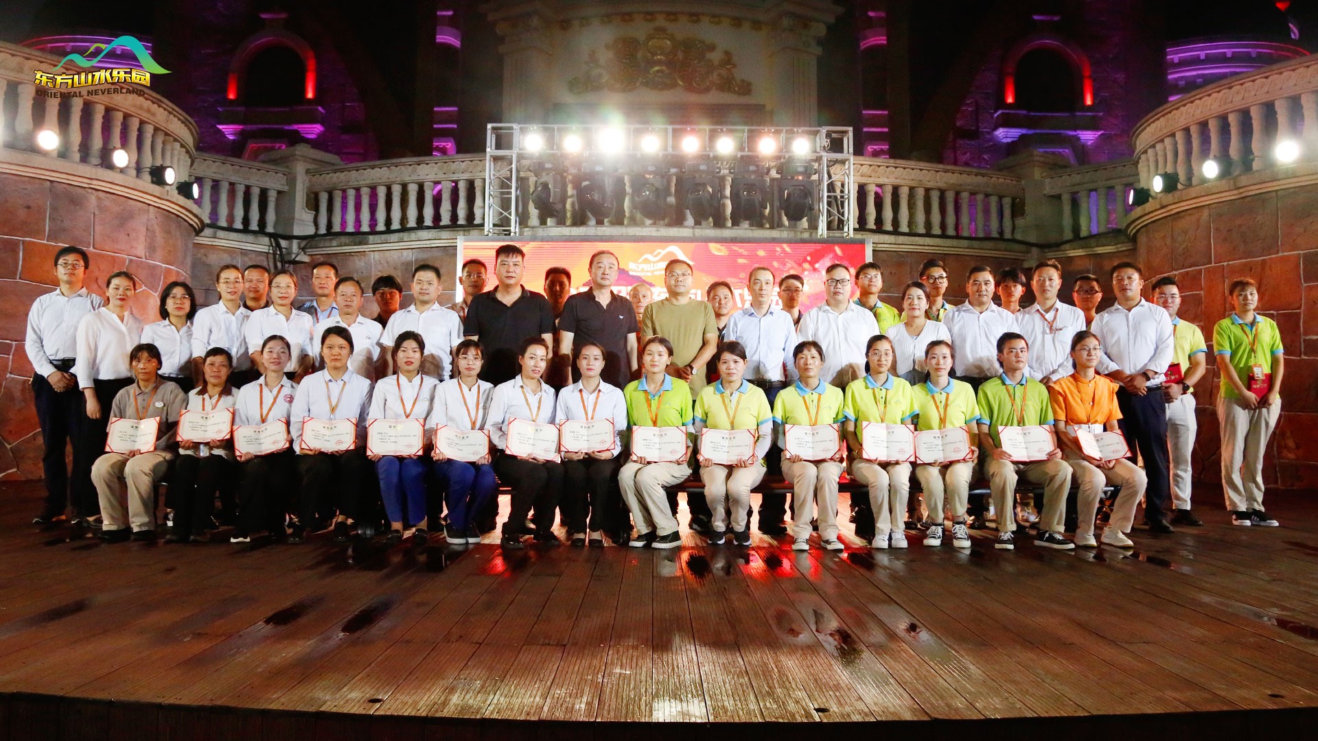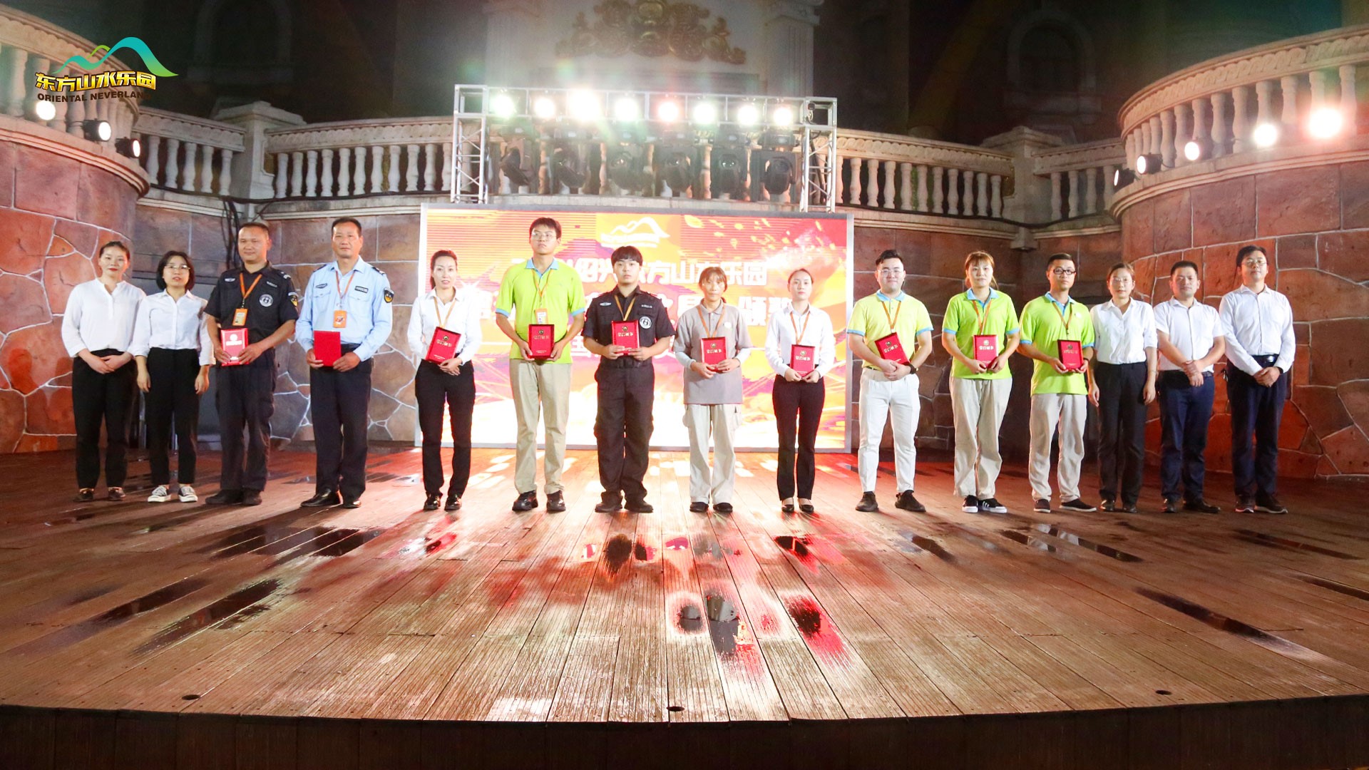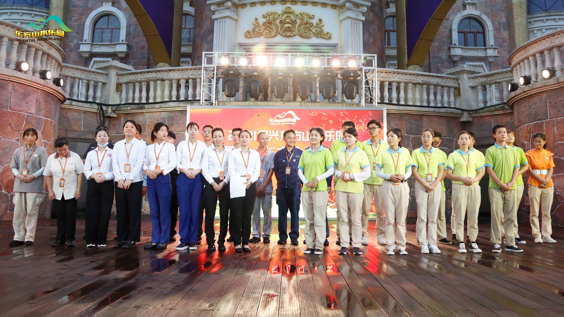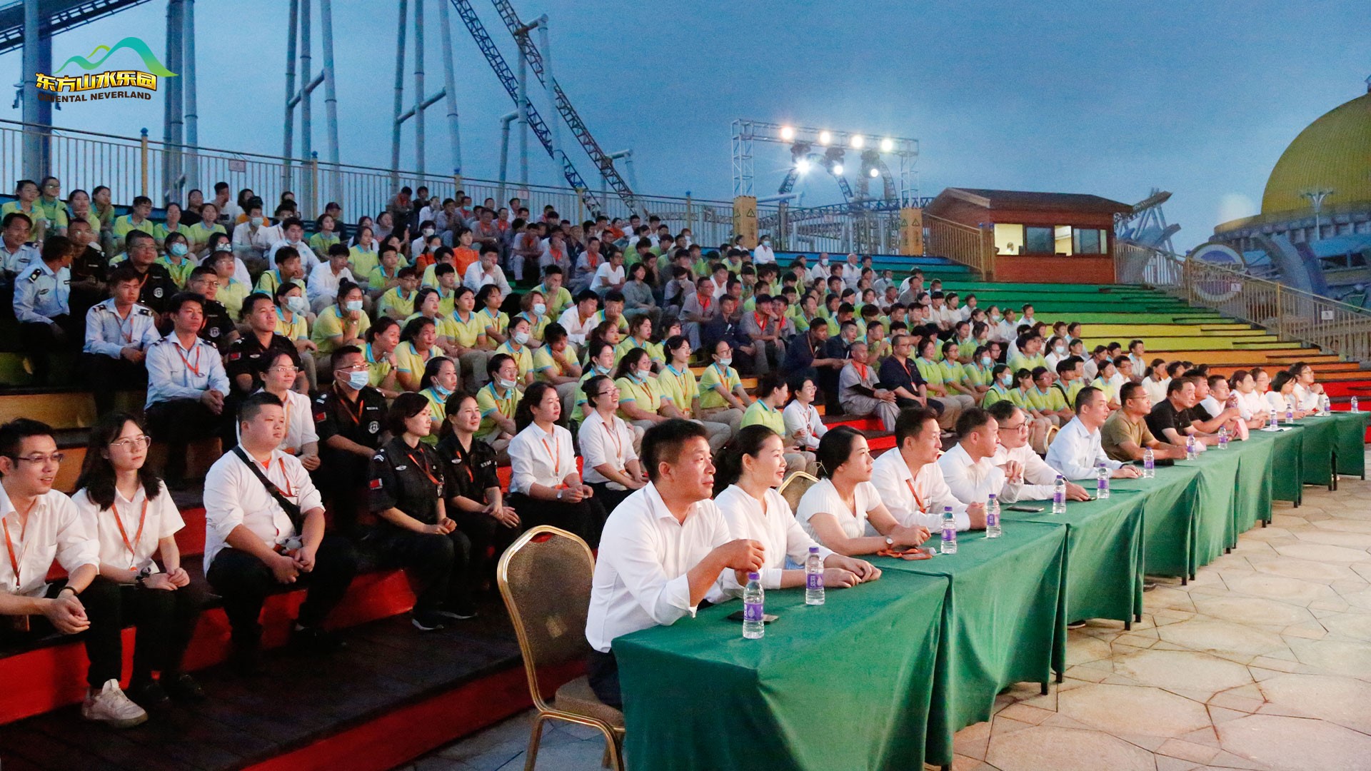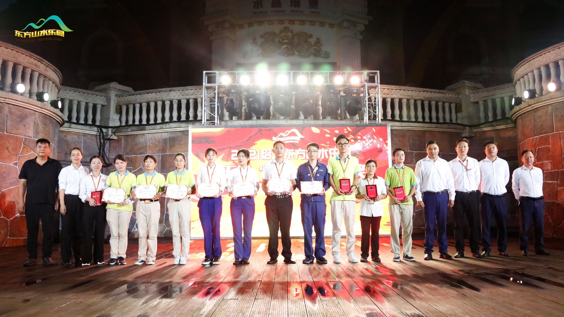 金秋九月,丰收在望。2021年9月29日傍晚,东方山水乐园全体员工齐聚酷玩水晶城堡,隆重举行2021年第五届“东方之星”表彰大会及国庆动员大会。乐园管理层团队悉数参加。