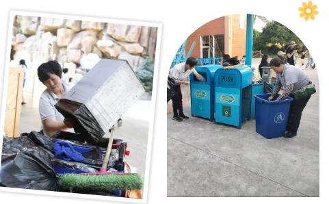 保洁人员穿梭于园区各个角落,增加清扫频次,确保环境整洁有序。