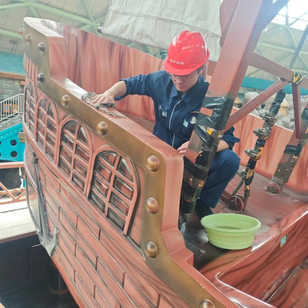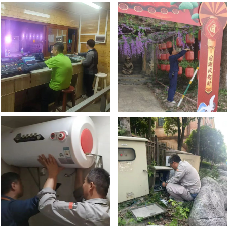 工程部员工以专业与匠心,细致维护乐园设施,默默守护游客的欢乐时光,同时全面排查宿舍电气线路,保障员工住宿安全。