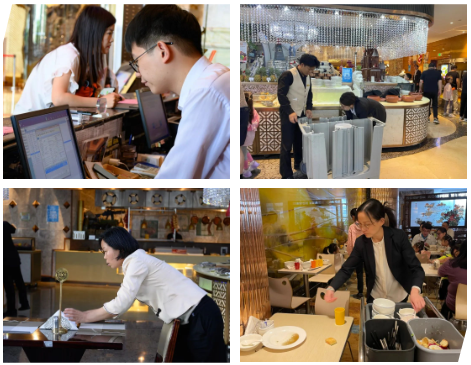 五一期间,酒店各岗位员工坚守一线、紧密协作。