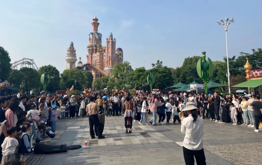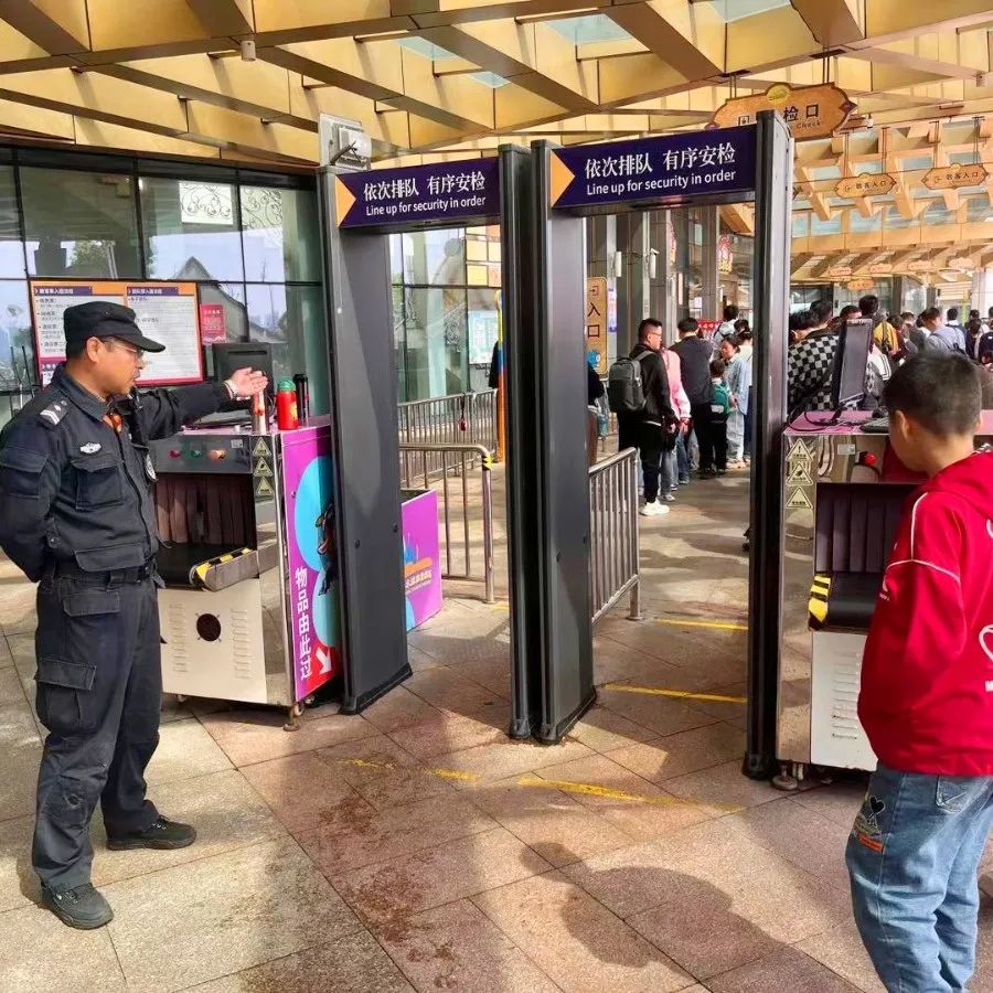 作为最前沿的一线面客部门,节日期间,在检票口、游乐设备区域、演艺、烟花警戒等场所都能见到他们热情为游客服务的身影。