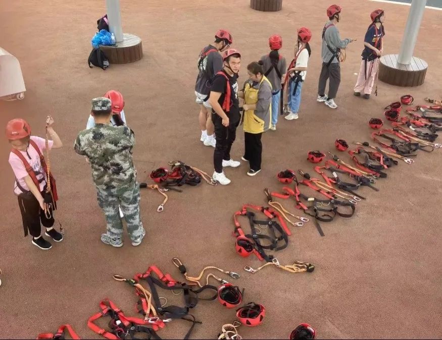 在素质拓展区,他们会细心讲解、穿戴、检查好装备及每一条挑战路线,还积极支援各运营岗位,确保游客玩得舒心、安心。