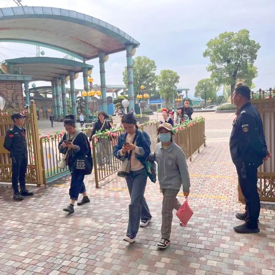 从乐园到酒店,从园外的交通指挥到园内的安全警戒,随时都能看到他们的身影。