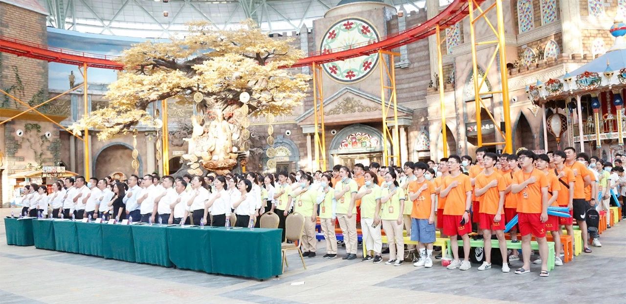 为了提升全体员工的安全意识,夯实乐园安全根基,增强安全责任感,杜绝事故灾害发生。2022年6月22日晚,近千名干部职工齐聚东方山水一期山之王国,联合开展了丰富多彩的安全生产月主题活动。