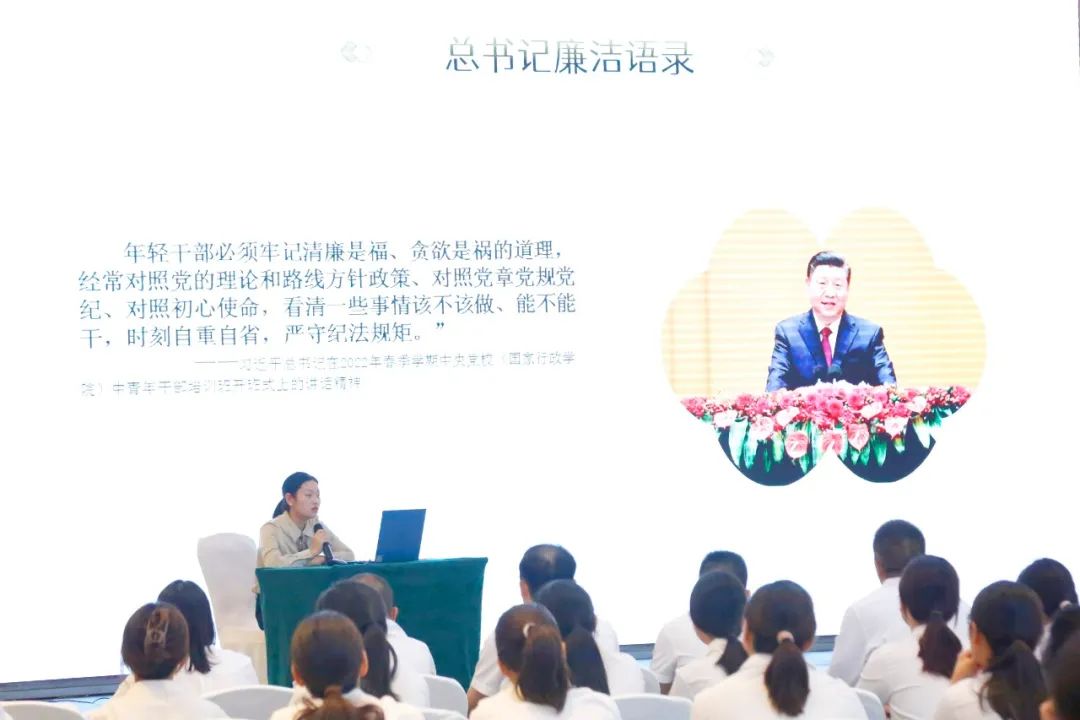 讲师樊佳燕以《推进干部职工清廉教育》为导向,从企业职工作风廉正建设视角切入,结合古今中外反腐败形势、行业和岗位廉洁风险分析、廉洁从业等三个方面提醒大家:敬畏法律、廉洁自律、珍惜岗位,忠于企业,努力在企业的高质量发展中实现自己的理想和价值。