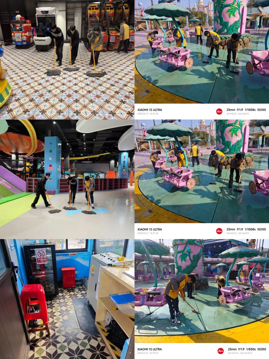 本周,安委办督促各部开展安全自查自纠工作,着重对节前大型游乐设备安全、消防防火安全、食品安全、用电安全、演艺高空威亚及建筑物高空悬挂物等进行全面排查,并落实整改措施,为乐园春节安全运营打下良好基础。