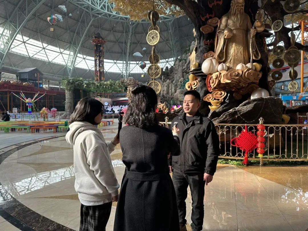 1月21日下午,柯桥传媒集团记者走访东方山水乐园,采访报道园区春节特色活动,企划部经理欧阳骏及当日游客接受了本次采访。