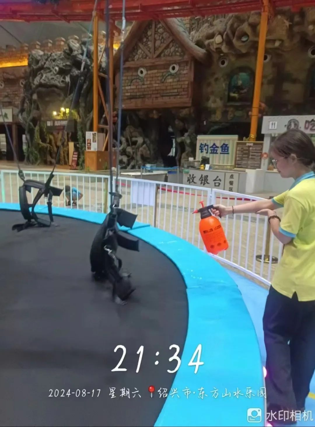 本周,部门利用晨会时间进行服务礼仪提升的相关培训,并在下班后对需脱鞋游玩的淘气堡等设备进行全面消毒,让游客玩得安心。