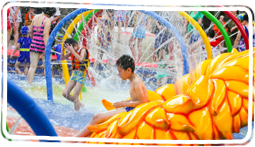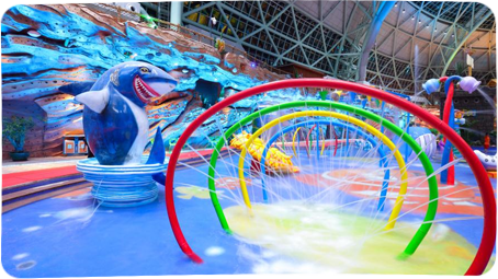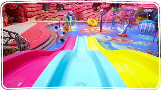 精灵水堡是专供儿童游玩戏水的区域,水堡中设有跷跷板、直线滑梯、旋转滑梯等水上游乐设施,蔚蓝色的海水衬托出海贝鲸鱼、海螺的色彩绚丽,使人仿佛置身于童话世界里,是深受青少年儿童喜欢的水上游乐设备之一。