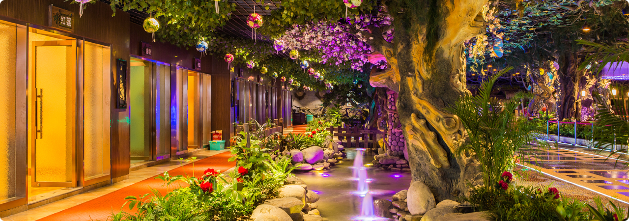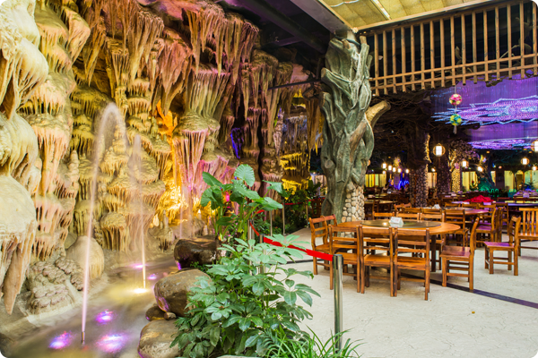 Natural species and communities of various themes displayed in the dinning hall make people enjoy rich natural environment without hiking. In the meantime, exotic customs are also integrated in it. People are immersed in tropical rainforest, southern customs, and Jiangnan Waterside, far away from noise city, and enjoy pleasure brought by nature while enjoying cate.