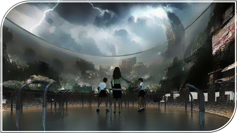 World-shaking is also called Disaster Experience Hall. You can experience all kinds of natural disasters here, such as strong wind, rainstorm, earthquake, etc.
