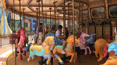 碰碰车、旋转木马、转转杯、滑滑梯应接不暇