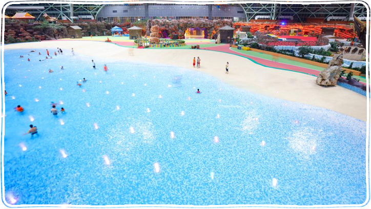 阳光海岸又称造浪池,浪潮可造出排山浪、转浪、钻石浪、突起浪等奇特造型的浪,280M长的室内海岸线,让游客在放松休闲之余,体验漫步黄金海岸的惬意。“阳光海岸”一会儿水波涟漪,一会儿波浪汹涌,游客置身其中,任由接踵而来的浪花拍击、推拥,感受大海一样的生机和魅力,领略海滩一样的清凉和舒适。