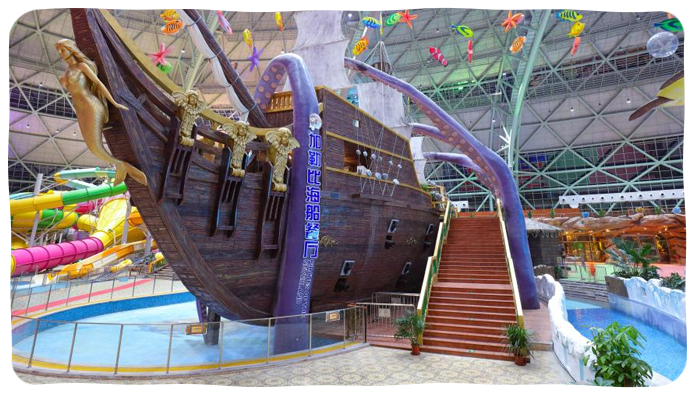 全室内全恒温的水公园,水帘飞瀑,水榭凉亭... ...